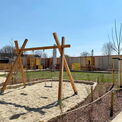 Den Innenräumen gleichwertig ist der Außenbereich gestaltet. Es gibt verschiedene Bereiche, welche die Kinder u.a. zum Matschen, Klettern, Bewegen, Kreativ sein und Spielen einladen.